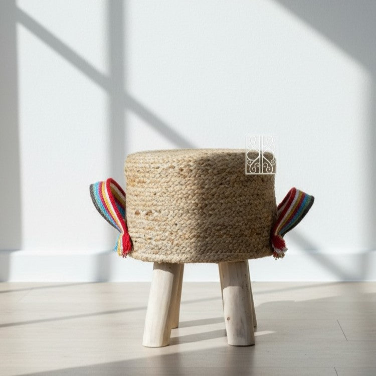 Jute pouffe | Jute stool with cute rainbow handles