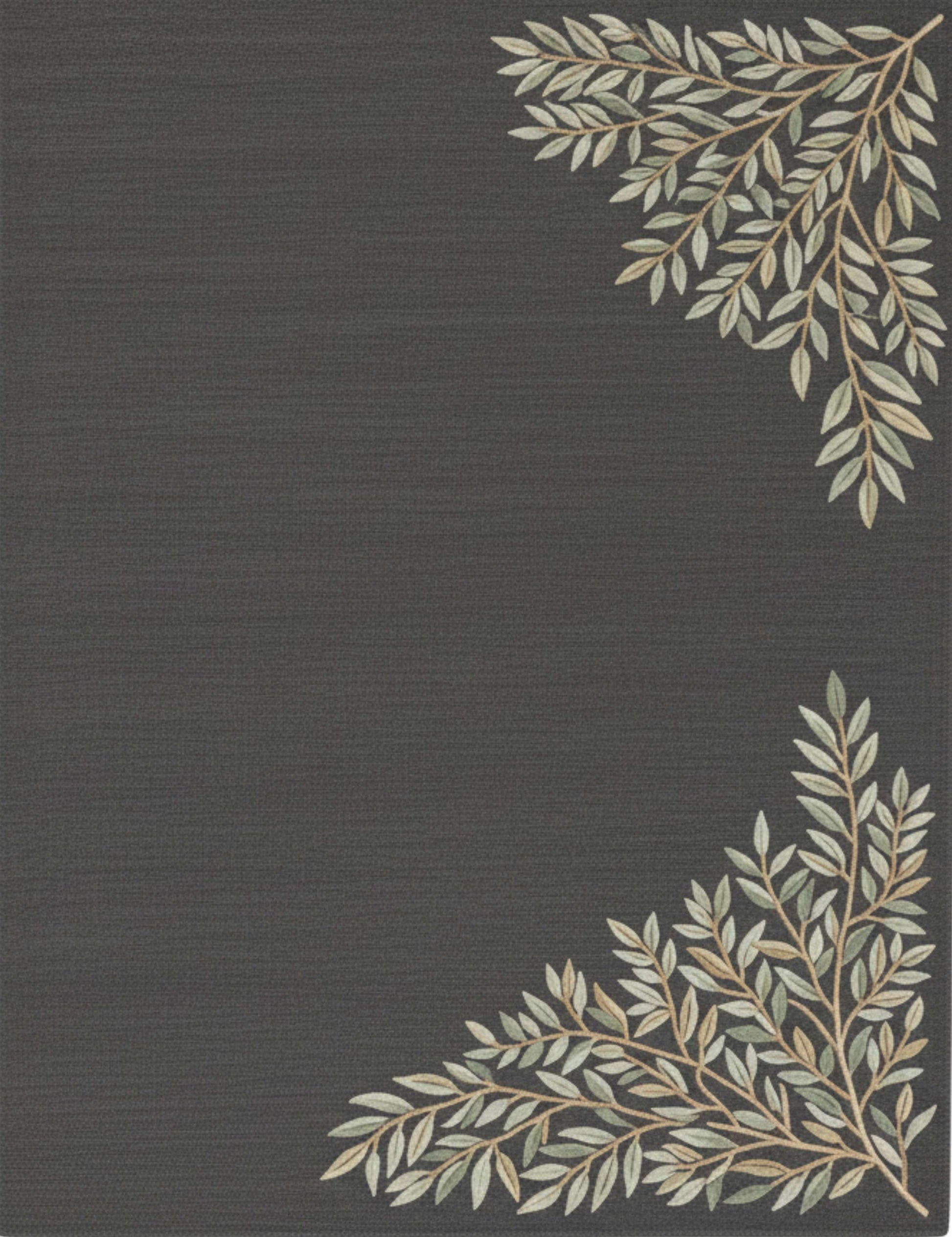 Bring earthy sophistication into your living space with the Charcoal Mist Botanical Rug by Karmakriti. Designed for the mindful home, this rug features delicately woven botanical motifs in soft sage and beige tones set against a deep charcoal base — a perfect balance of modern minimalism and natural serenity.